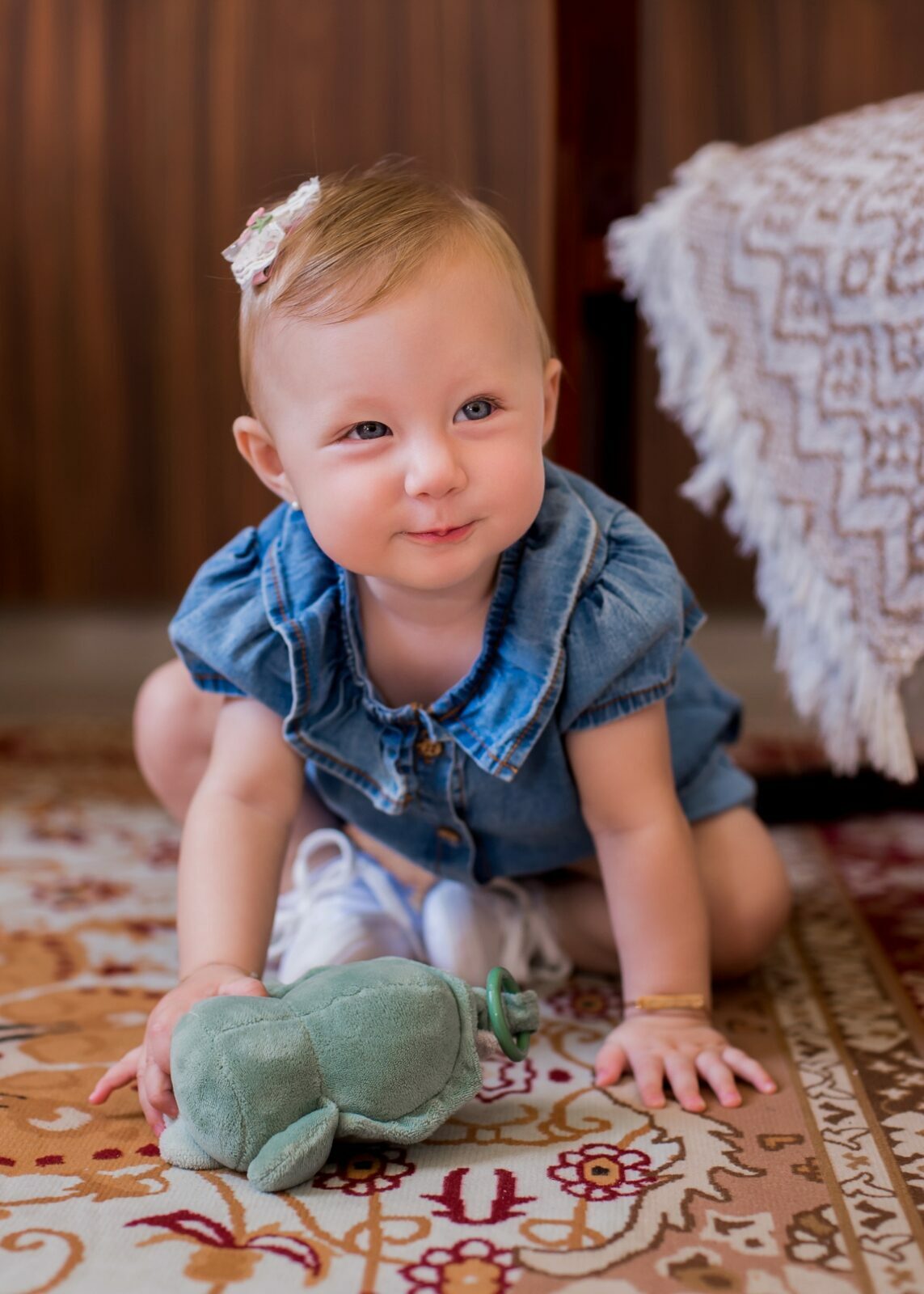 Nesta fase tudo vira descoberta. Um olhar novo para a luz que entra pela janela, as mãos explorando objetos, as expressões mudando a cada segundo. A Maria Clara está vivendo aquele momento encantador em que o bebê começa a perceber que faz parte do ambiente. Ela observa, reage, responde e participa. É impressionante como a inteligência e a curiosidade aparecem nos pequenos gestos.