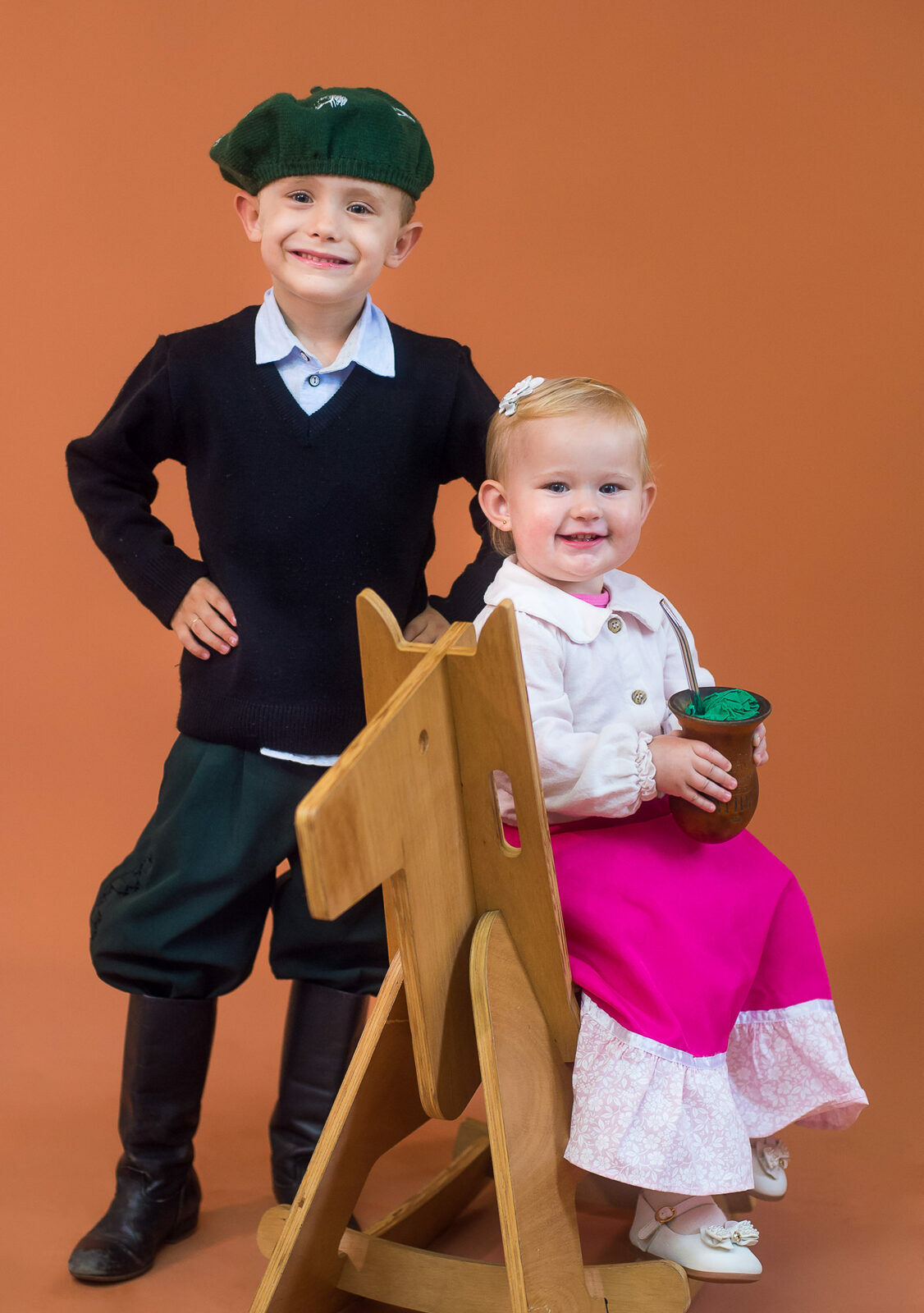 Neste ensaio temático, o estúdio se encheu de cores, tradições e histórias. Celebramos a Semana Farroupilha com famílias que trouxeram seus pequenos vestidos de gaúchinhos e prendinhas para viver a tradição de forma divertida e cheia de carinho.