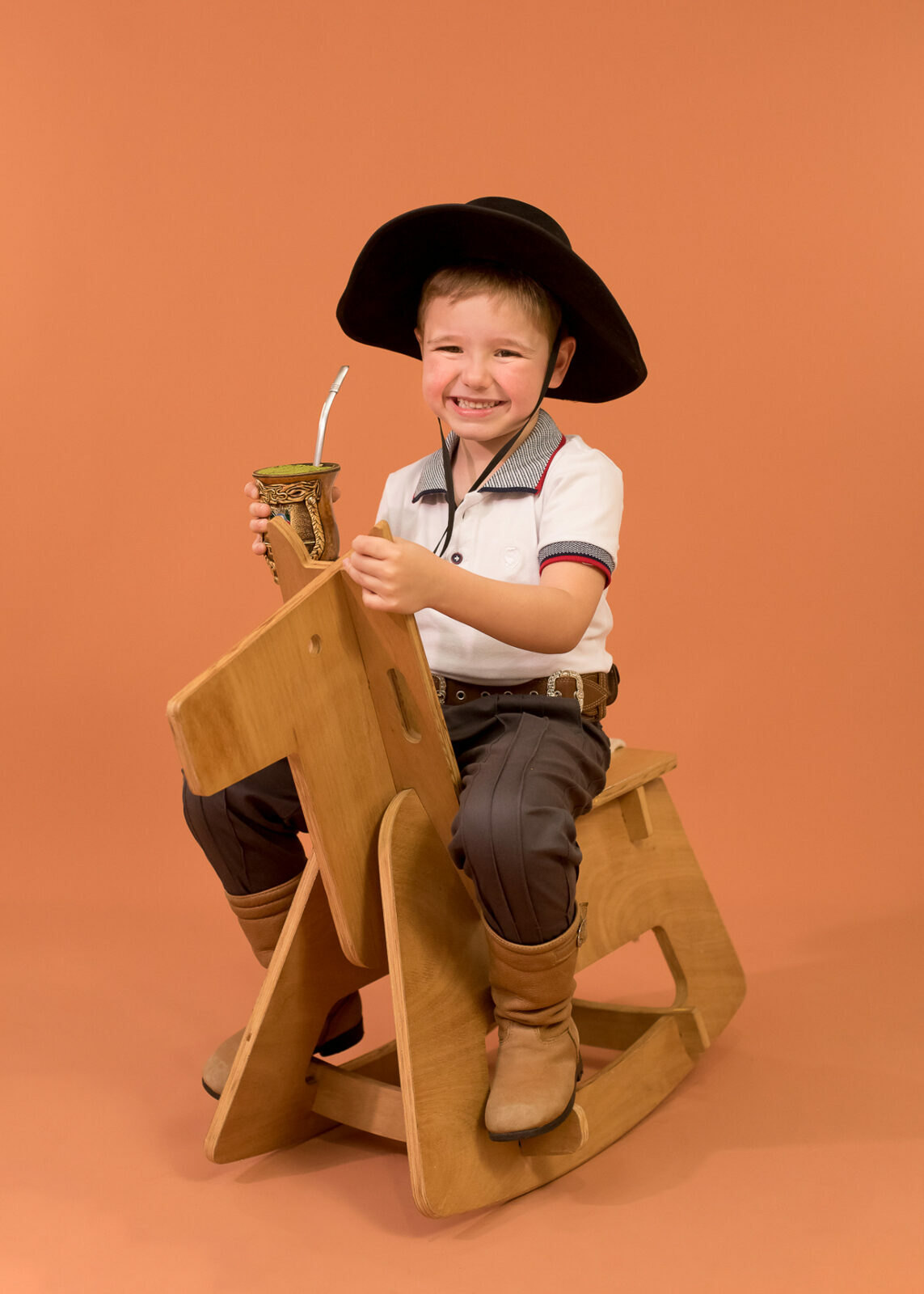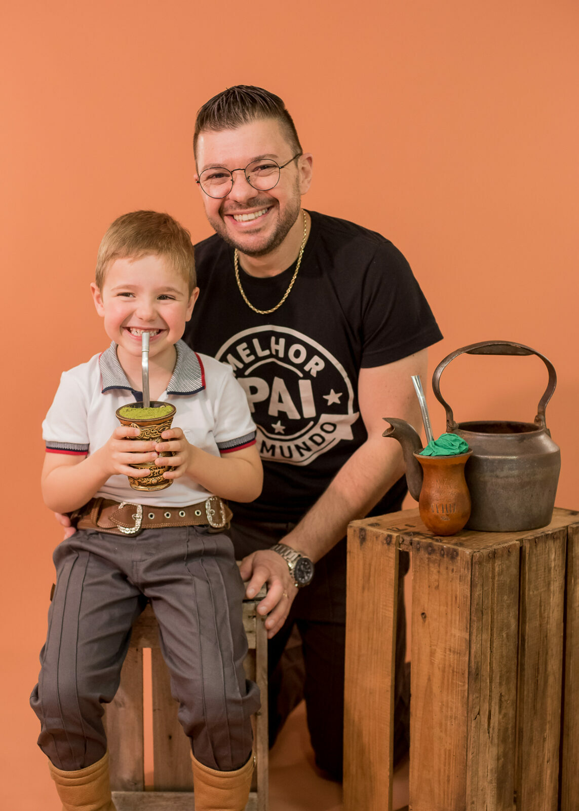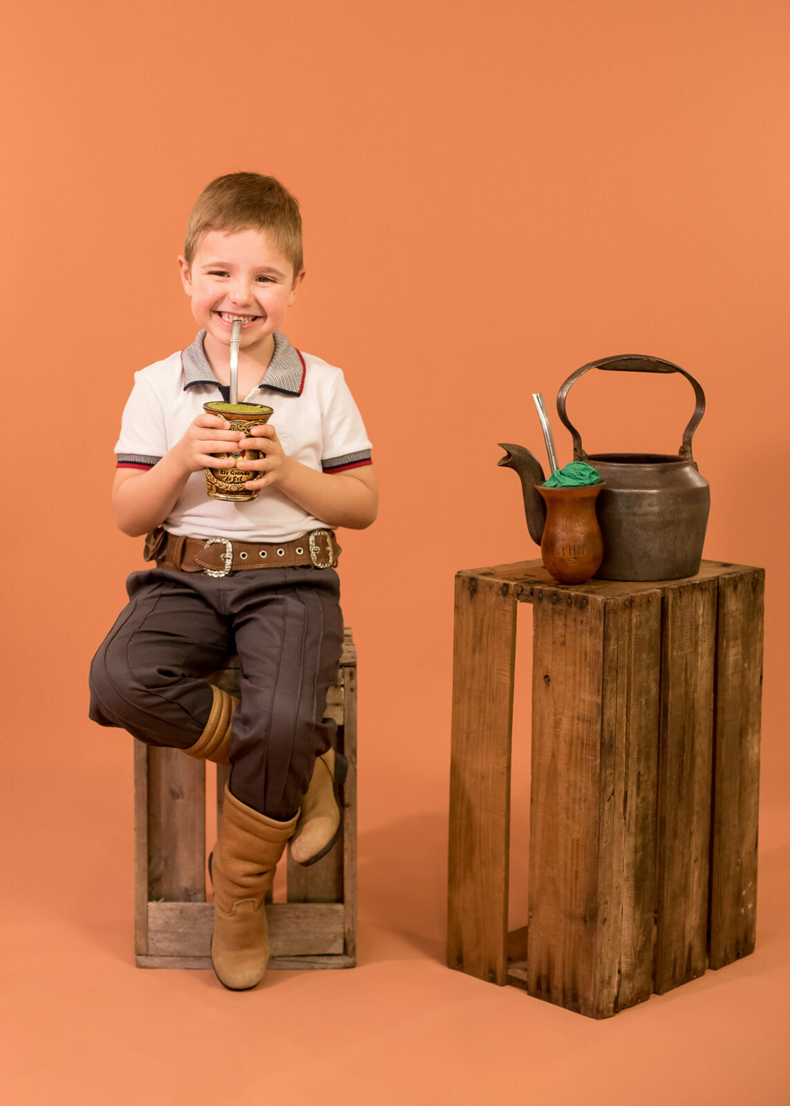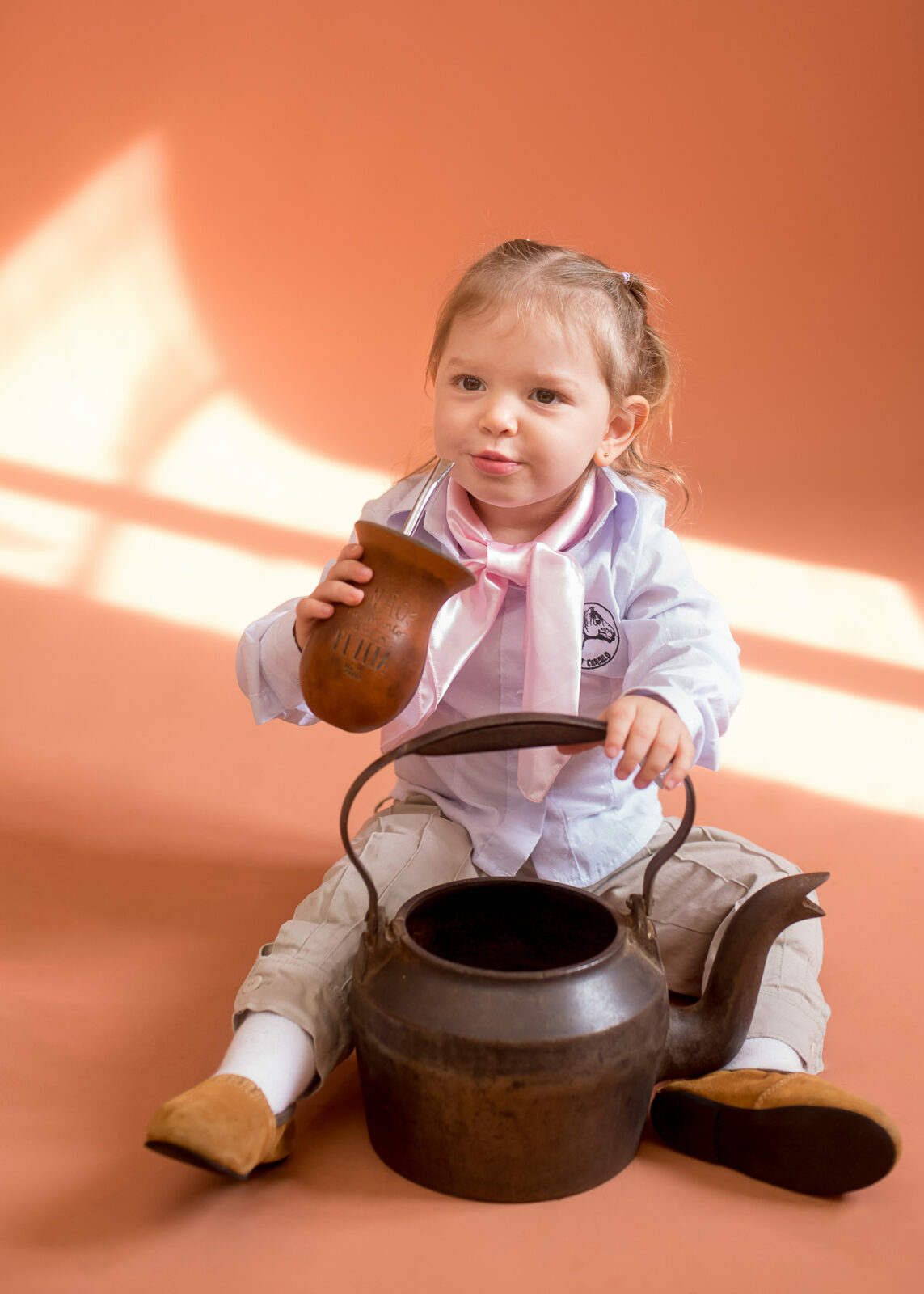 Entre um chimarrão e outro tivemos boas risadas espontâneas e olhares bem curiosos, as fotos criam uma clássica lembrança de infância que carrega o espírito gaúcho e o afeto de quem vive a cultura no dia a dia.