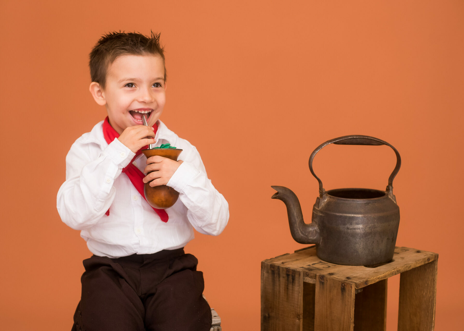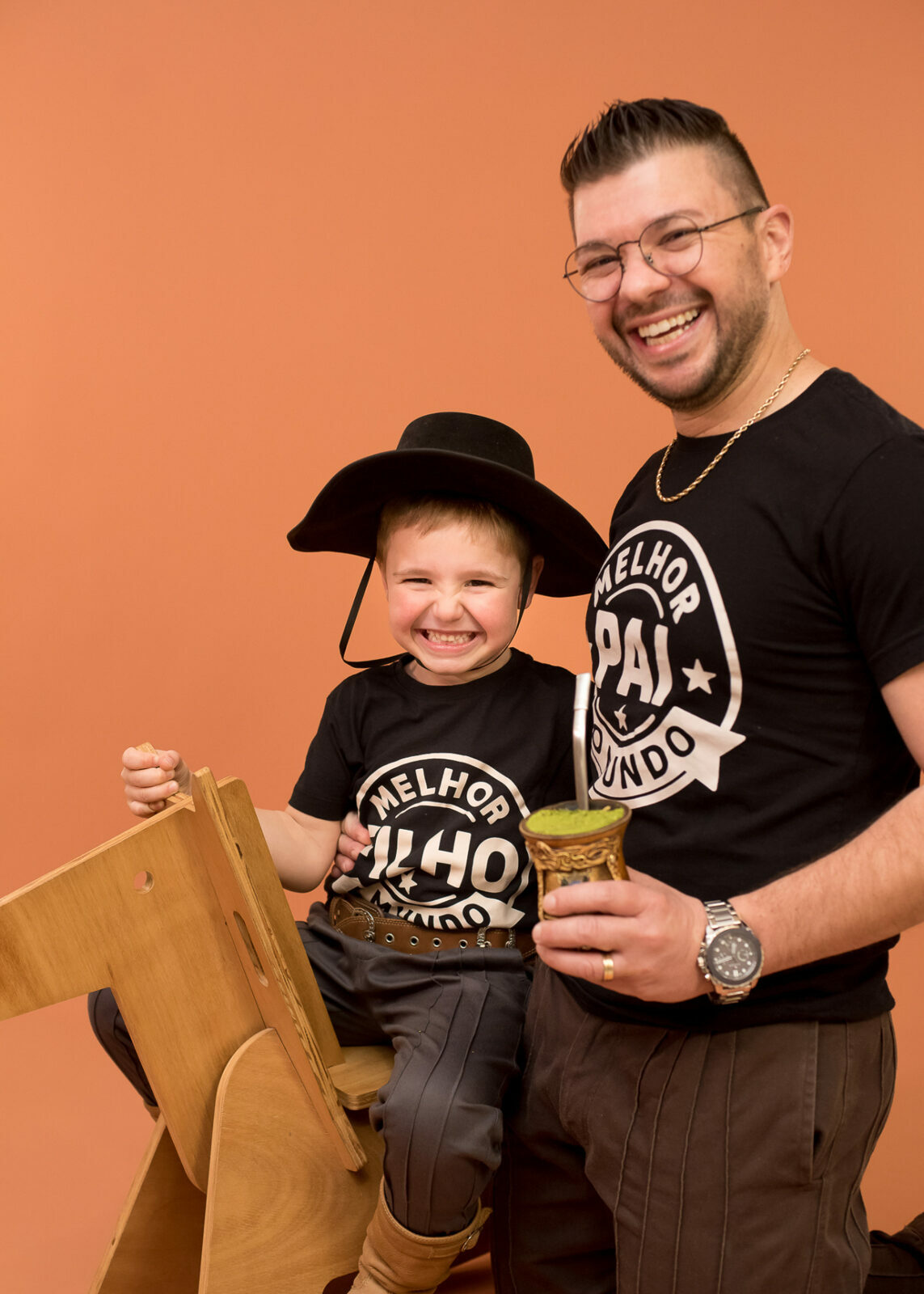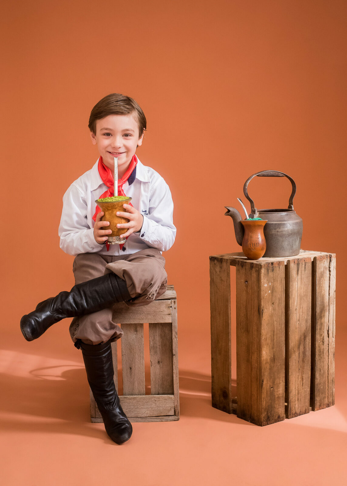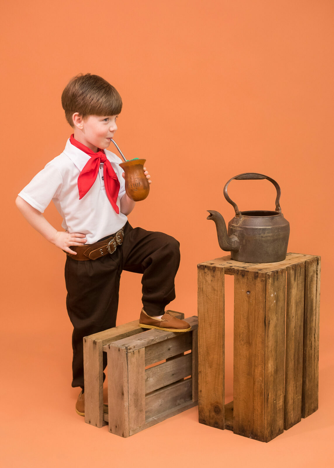 Entre um chimarrão e outro tivemos boas risadas espontâneas e olhares bem curiosos, as fotos criam uma clássica lembrança de infância que carrega o espírito gaúcho e o afeto de quem vive a cultura no dia a dia.