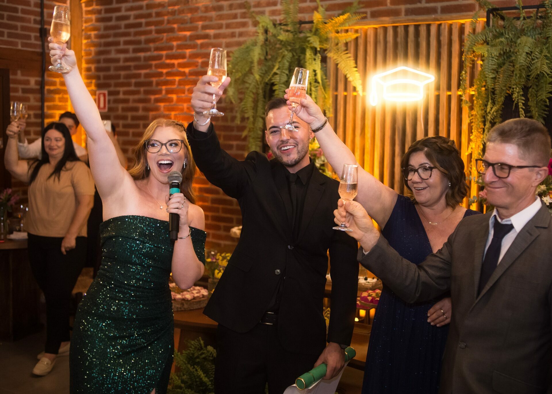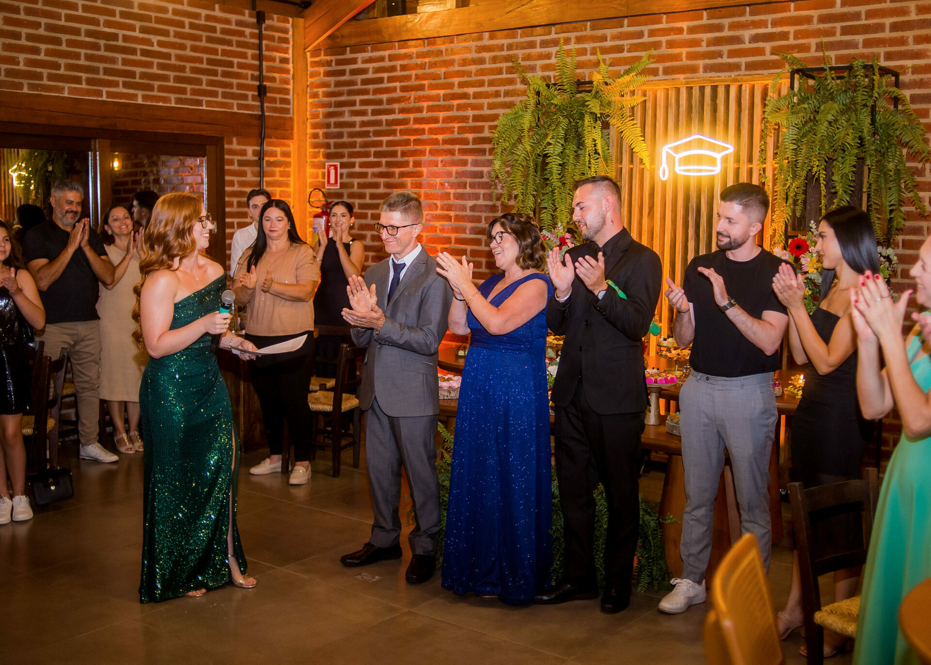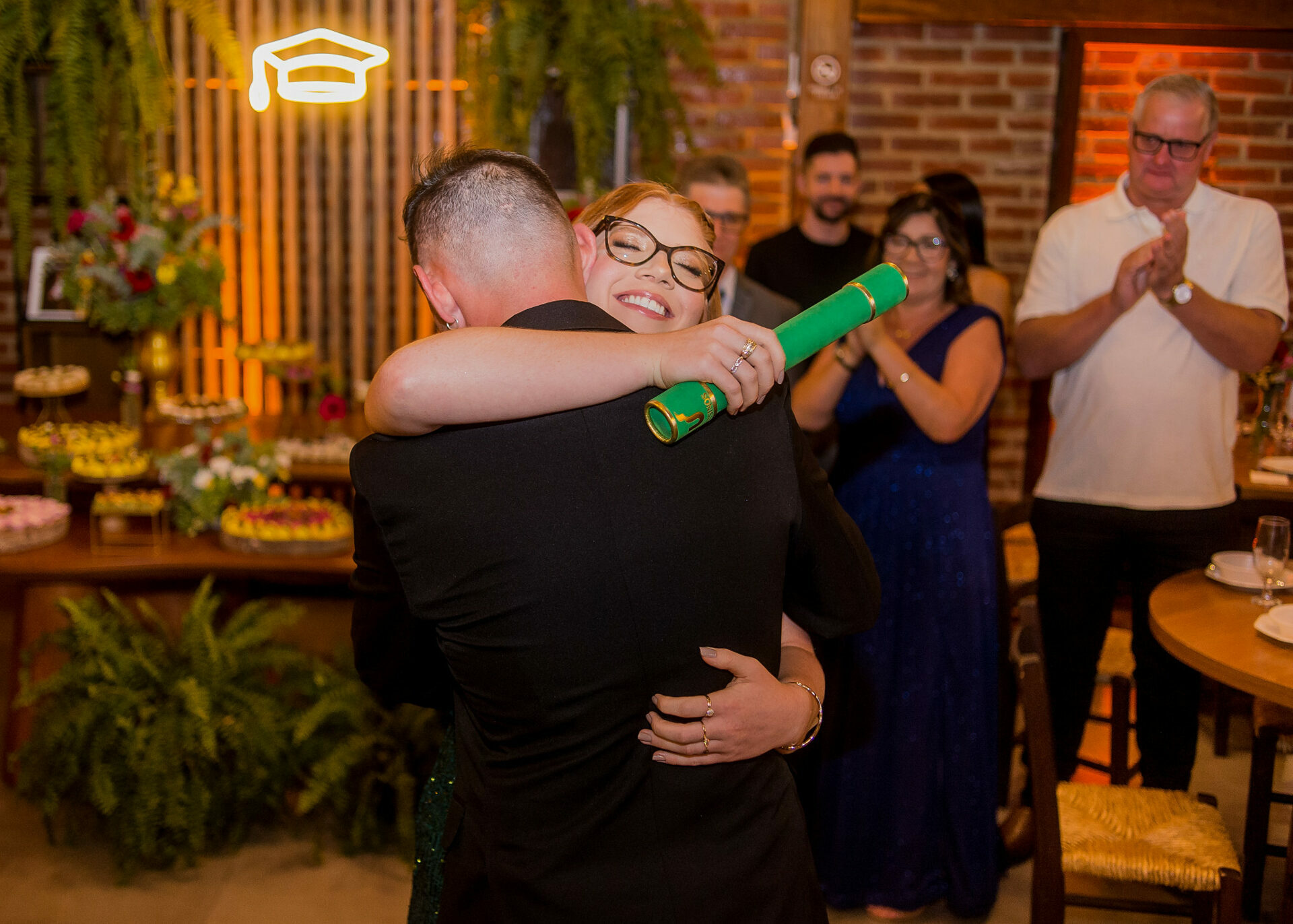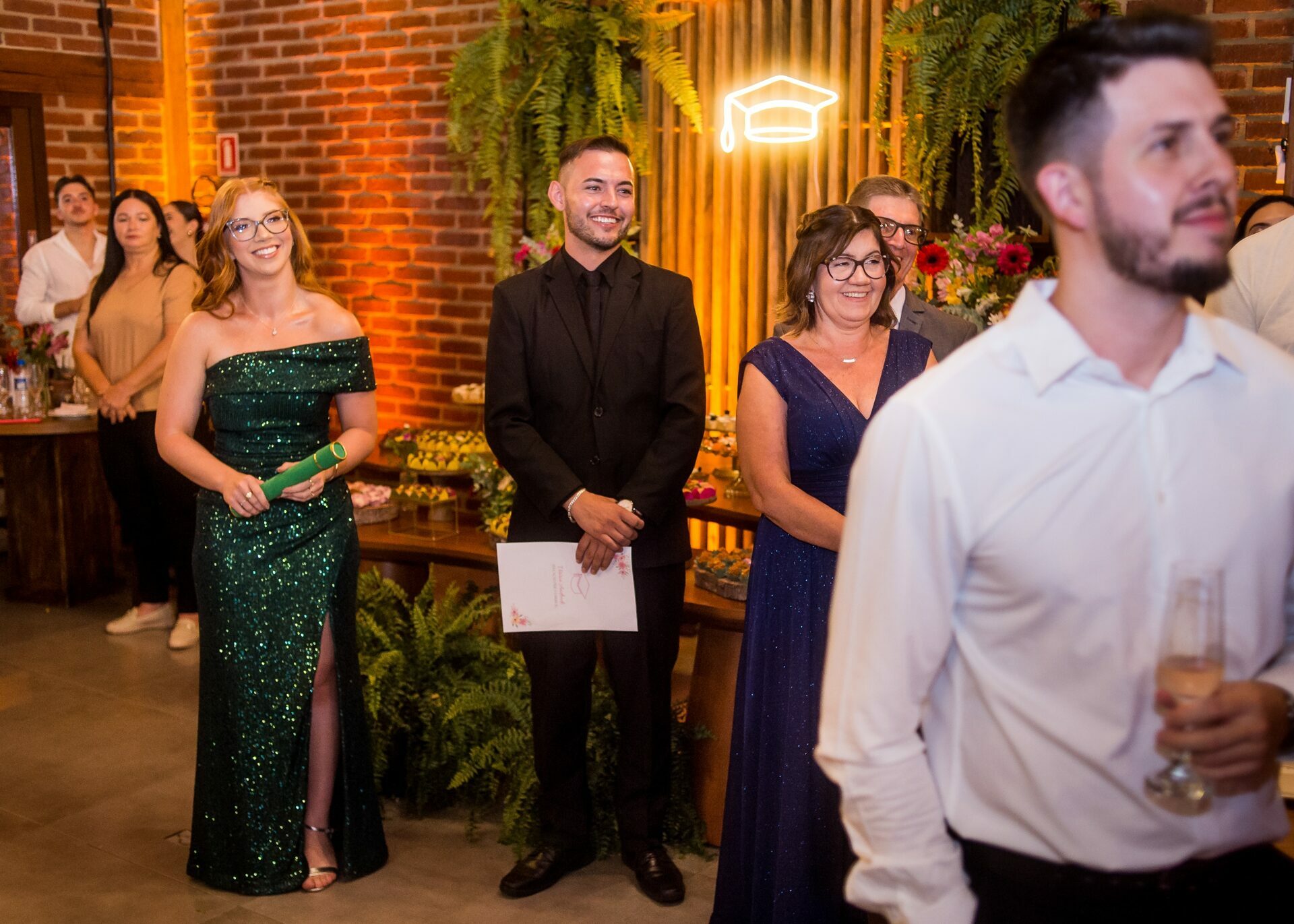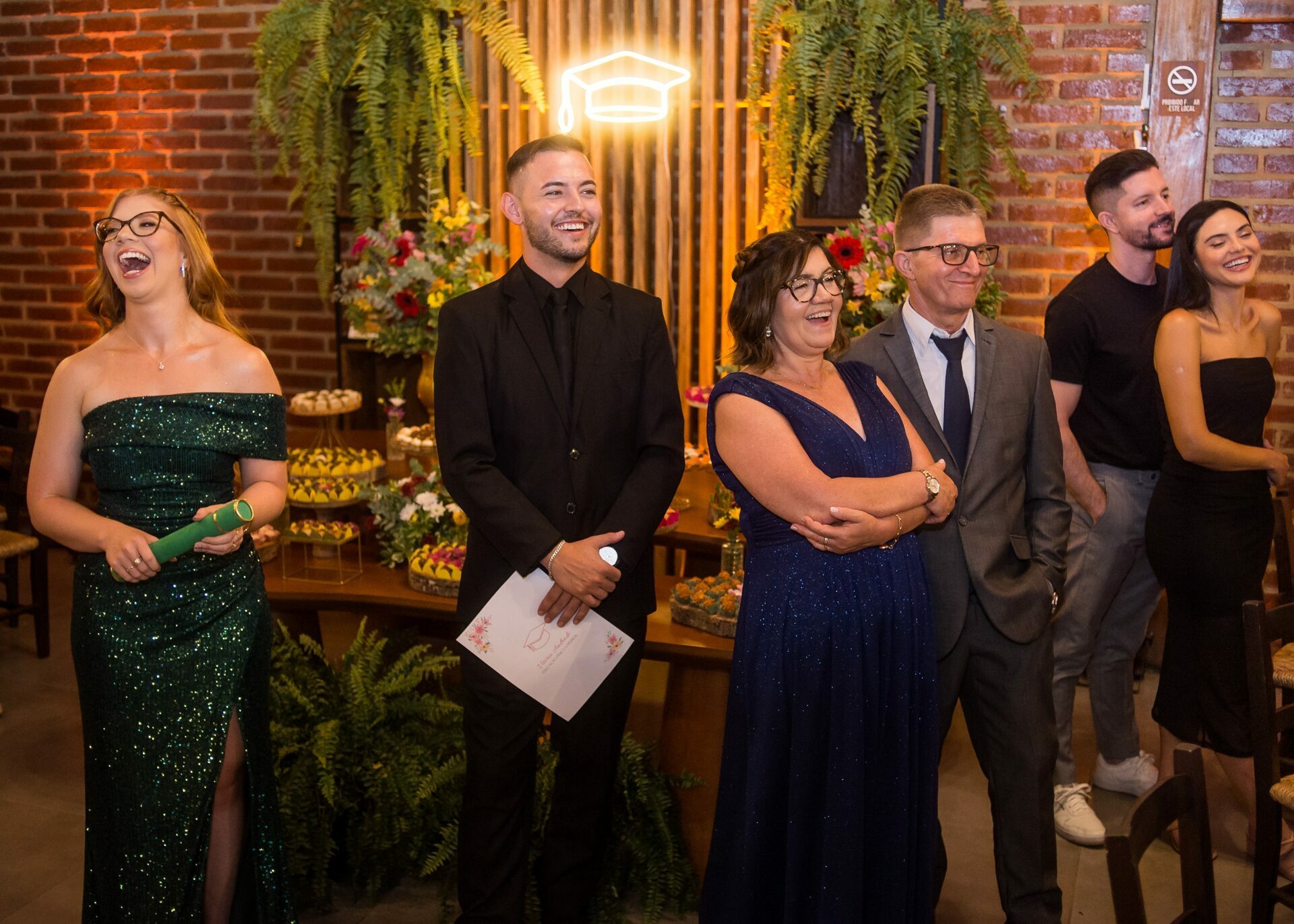 Depois do protocolo e das fotos clássicas de beca, foram todos comemorar. A festa foi no La Bodeguita, em Taquara, um lugar ótimo que garantiu que todo mundo aproveitasse a noite para valer e celebrasse até o dia amanhecer.